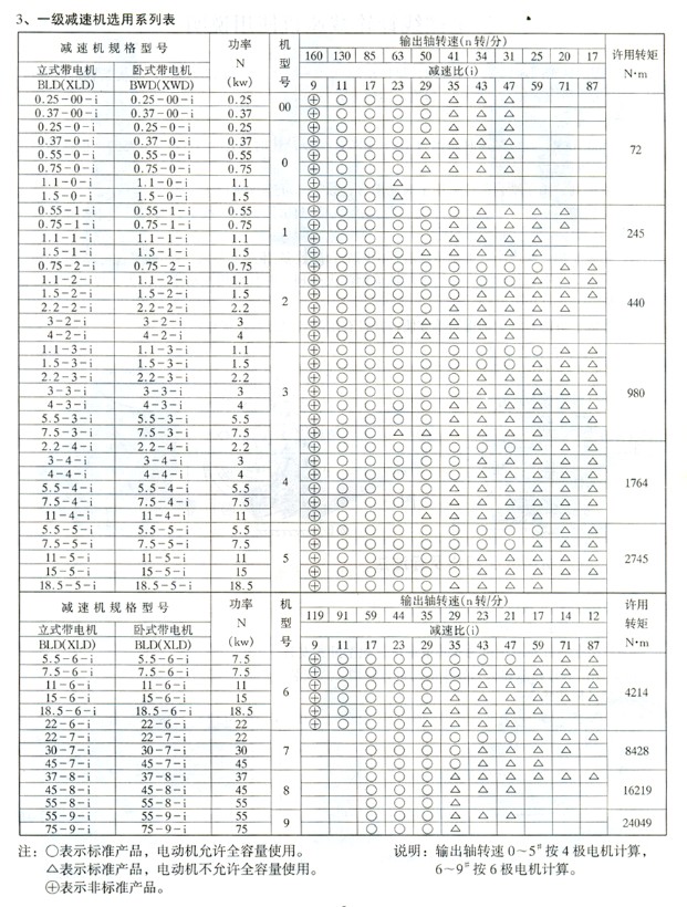 注:摆线针轮减速机根据用户要求,可匹配调速电机、制动电机、防爆电机、普通Y系列电机等。根据减速机机座号的大小匹配不同功率的电机,(0.04kw)-75kw不等。