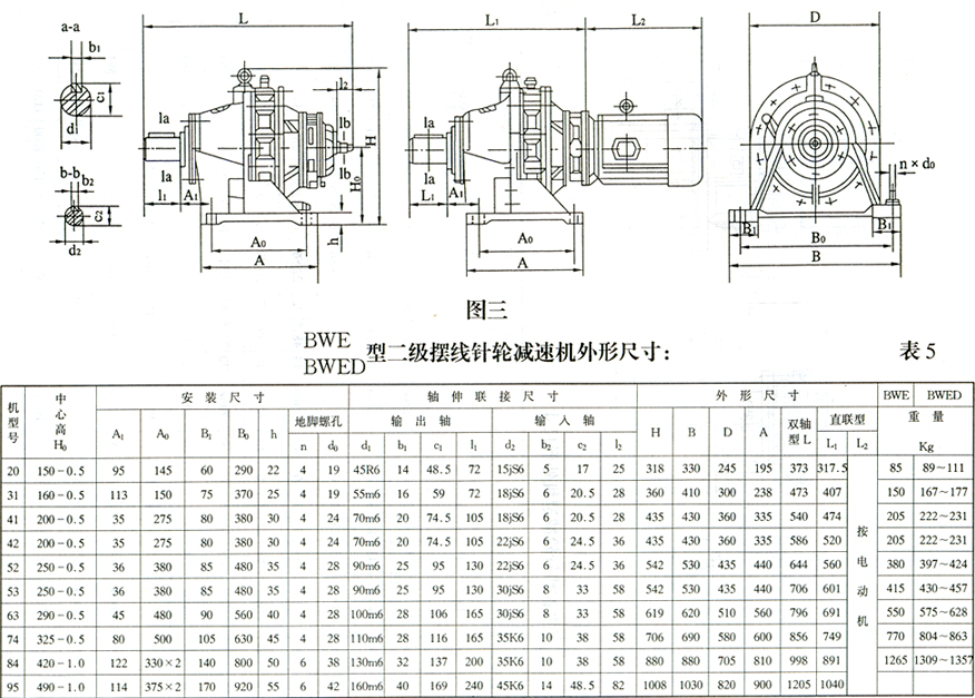 注:摆线针轮减速机根据用户要求,可匹配调速电机、制动电机、防爆电机、普通Y系列电机等。根据减速机机座号的大小匹配不同功率的电机,(0.04kw)-75kw不等。