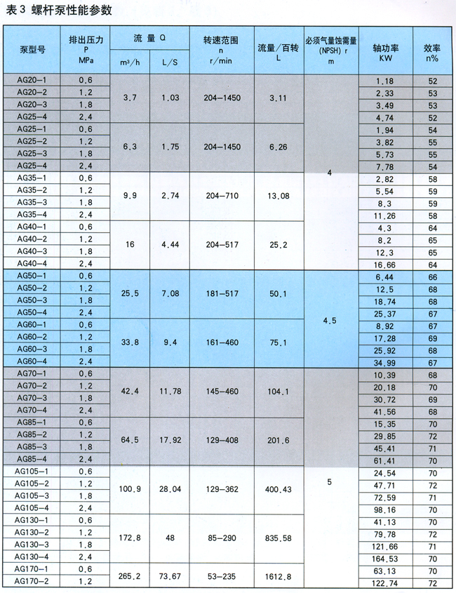 AG型单螺杆泵是一种容积式转子泵。可输送粘度200000Pa·s以下的介质。并具压力脉动小、噪声低、自吸性能好,无泄漏、无温升、结构简单易于维护等特点。适用于废水处理、化学和石油化工、造纸和食品工业、输送清洁或含有固体颗粒、纤维、悬浮物的流体。例如:污水、油、油渣、糖浆、果酱和泥浆及含有酸、碱等介质。
