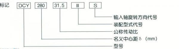 名义中心距为280mm,公称传动比为31.5,装配型式第Ⅲ种,输入轴顺时针方向旋转的三种传动减速器标记为DCY280-31.5-ⅢS。