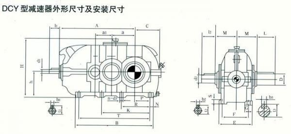 DBY型为二级传动,DCY型为三级传动。DBY型和DCY型第一级传动为格里森弧齿锥齿轮,第二、第三级传动为渐开线圆柱斜齿轮。